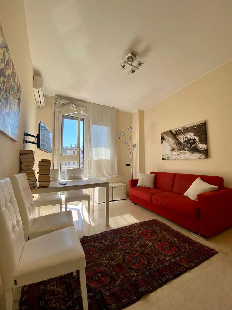 Corso Monforte bilocale di mq 50 circa al 5° piano totalmente arredato composto da soggiorno, angolo cottura, camera, bagno e un balcone. Il condominio è dotato di portineria, ascensore ed il riscaldamento è centralizzato. L'appartamento è dotato di aria condizionata. Canone Eu. 20.400, 00 annui comprensivo di spese condominiali.